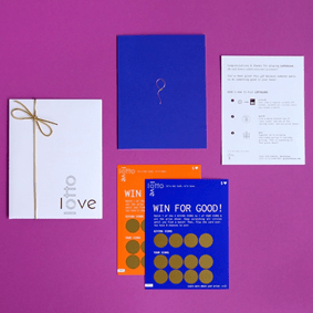 Everybody wins when you scratch off a LottoLove card. Each card reveals a surprise charitable gift (weeks of clean water, months of solar energy, sets of literacy tools, or nutritious meals), given to someone in need.